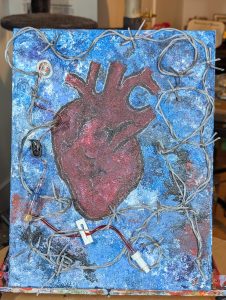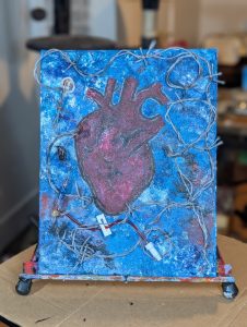 I am honored to grace their gallery walls with pieces of me. This particular piece has been in my mind for years. I held onto some of my port supplies after finally getting it removed 9 years, 5 months, and a day after being traumatically shoved into my chest around 2 am during a nightmare inpatient stay in the hospital.
