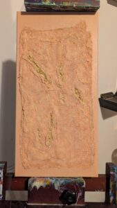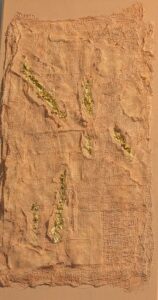 In Unmasked Healing, I utilize gauze-like textures and gold leaf to map the topography of the medicalized body. By placing gold directly into the “wounds” of the fabric, I refuse to obscure the evidence of struggle. Instead, I transform these ruptures into sites of profound value. For me, art-making is a grounding practice that provides a necessary sanctuary from physical symptoms; it is where I turn the sensory chaos of illness into a luminous record of persistence. This piece serves as a reminder that our most weathered layers are often where our greatest resilience—and our most brilliant light—is found.